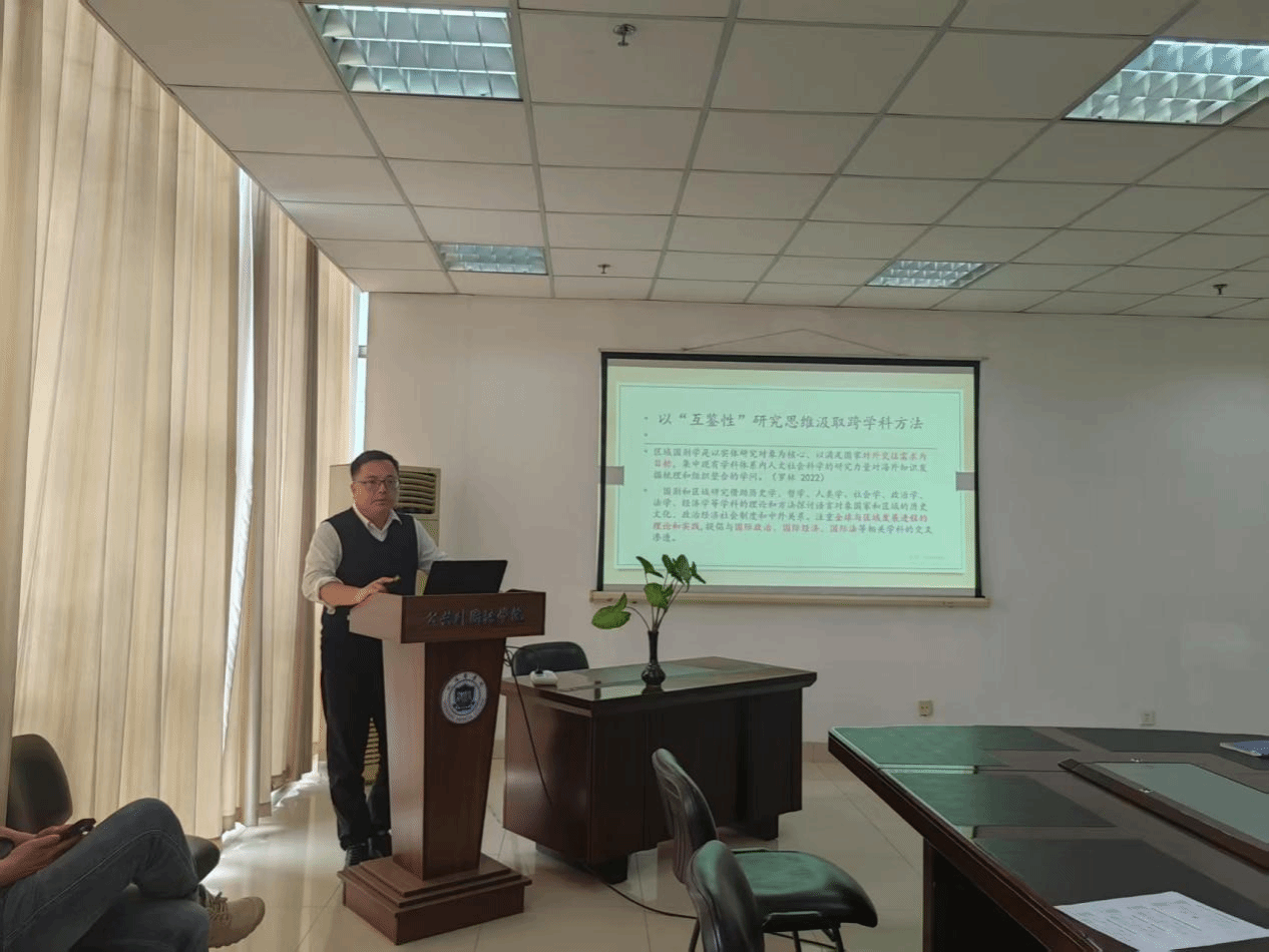 报告会上,陈靓教授以“区域国别学视域下外语学科的科研拓展及学术发表”为题展开了深入的讲解,他表示区域国别学是以实体研究对象为核心、满足国家对外交往需求的学问,具有重要的战略意义。与会师生围绕报告内容与专家进行了深入的交流和讨论。