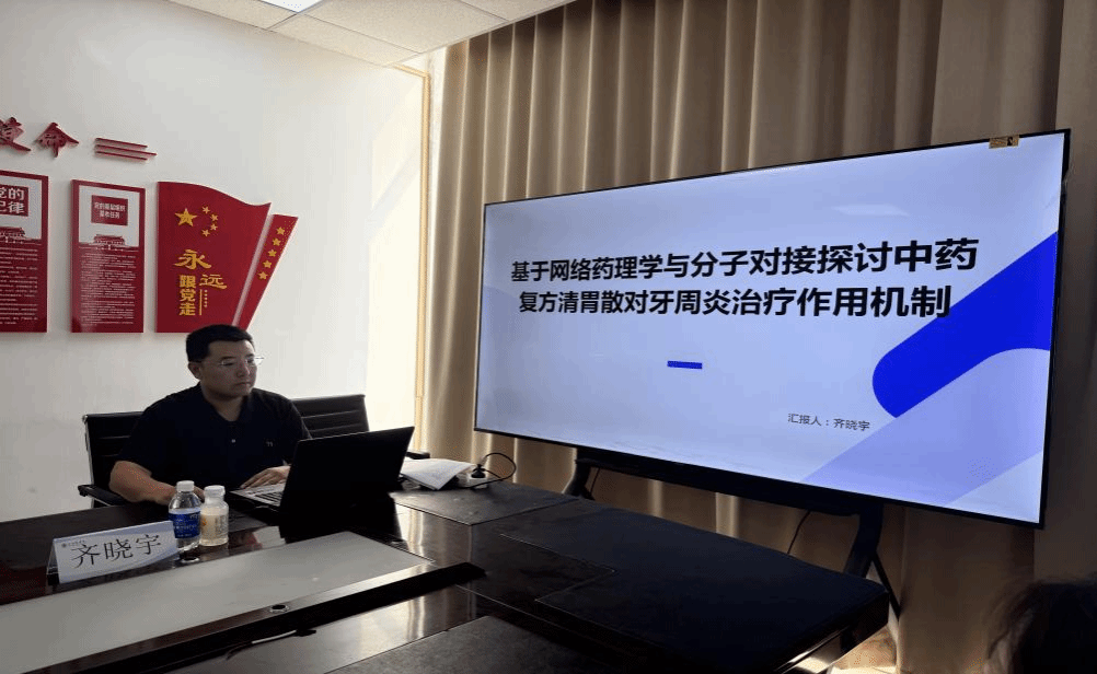 齐晓宇博士以“基于网络药理学与分子对接探讨中药复方清胃散对牙周炎治疗作用机制”为题,围绕前沿的网络药理学与分子对接技术,通过构建“药物–活性成分–靶基因”网络,系统揭示经典中药复方“清胃散”治疗牙周炎的多靶点作用机制,为其临床推广应用提供了坚实的现代科学依据。