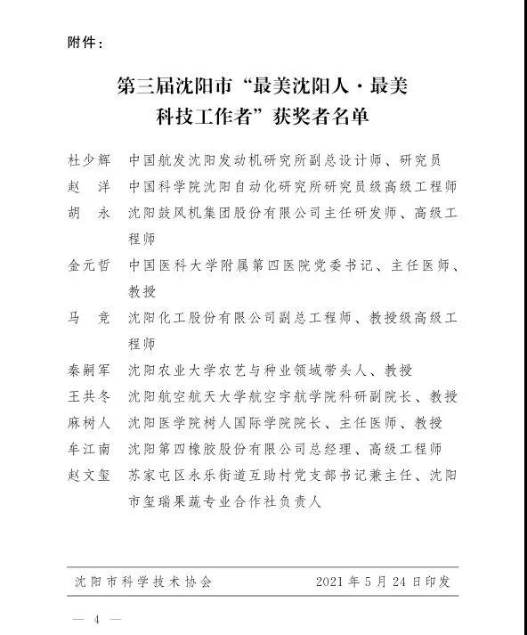 近日,由沈阳市科协、市委组织部、市委宣传部、市科技局、沈阳日报社、沈阳广播电视台联合举办的第三届沈阳市“最美沈阳人·最美科技工作者”评选结果揭晓。经过基层推选和专家评审,全市共有10人获此殊荣,米兰树人国际学院院长麻树人教授榜上有名。