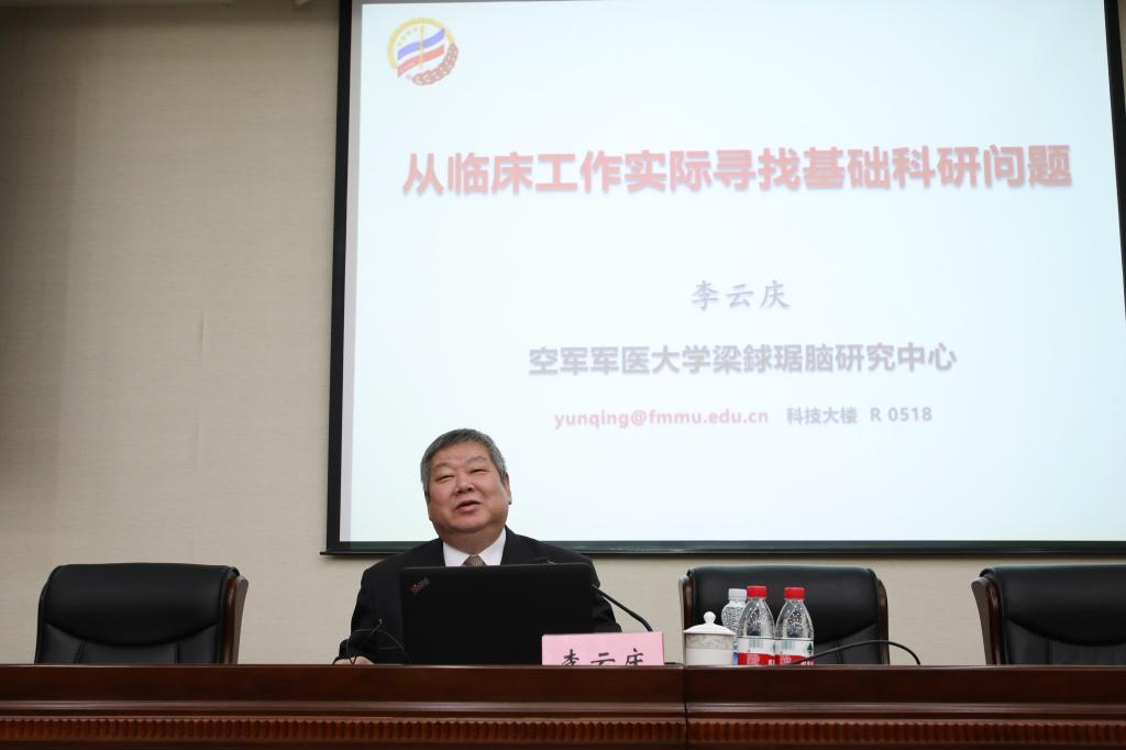 为拓宽师生学术视野,促进学术创新与交流,营造有利于科技创新和学术提升的良好氛围,5月15日上午,学校邀请教育部特聘教授、中国解剖学会副理事长、空军军医大学梁銶琚脑研究中心主任李云庆教授做客米兰专家论坛,为师生作学术报告。报告会由科技处处长赵宇丹主持,基础医学院部分教师、研究生100余人参加了此次学术报告会。