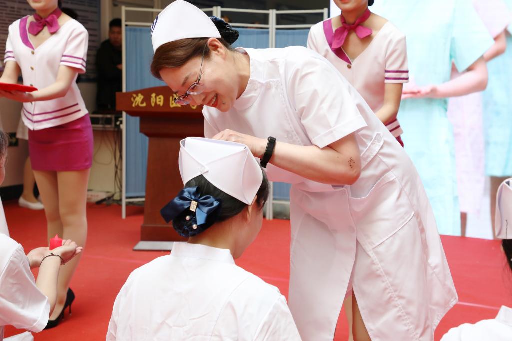 授帽仪式在护理学院副院长刘蕾讲述的护理发展历程中缓缓拉开帷幕。护理学院院长郭宏、附属中心医院护理部吴冰主任、附属第二医院护理部毕平主任3位护理前辈为30名即将走向实习岗位的实习学生代表授帽。护士的燕帽是护士职业的象征,它洁白、坚挺,两翼如飞燕状,像一道圣洁的光环,衬托着白衣天使崇高的使命,戴上它,就意味着同学们加入了白衣天使的行列,就要把救死扶伤作为自己终身奋斗的目标。护理前辈们不仅把洁白的燕尾帽传递给了护理事业未来接班人,同时也将生命责任交到她们手中。