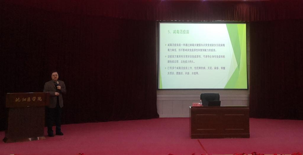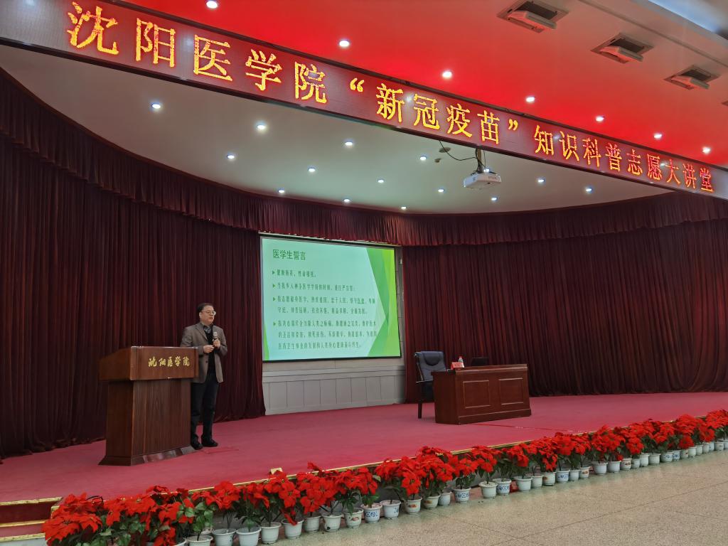 讲座伊始,李鹏飞教授从“疫苗的发明”“传染病的防控”“新冠疫苗的研发”“新冠疫苗的应用”四个方面,全面系统地对新冠疫苗相关知识进行了细致的讲解,其中有典型人物的生动事迹、权威数据的有力佐证和科研进步的骄人成绩。最后,李教授带领志愿者们重温了医学生誓言,号召作为医务工作者要不忘初心、牢记使命、敢为人先、勇于担当。