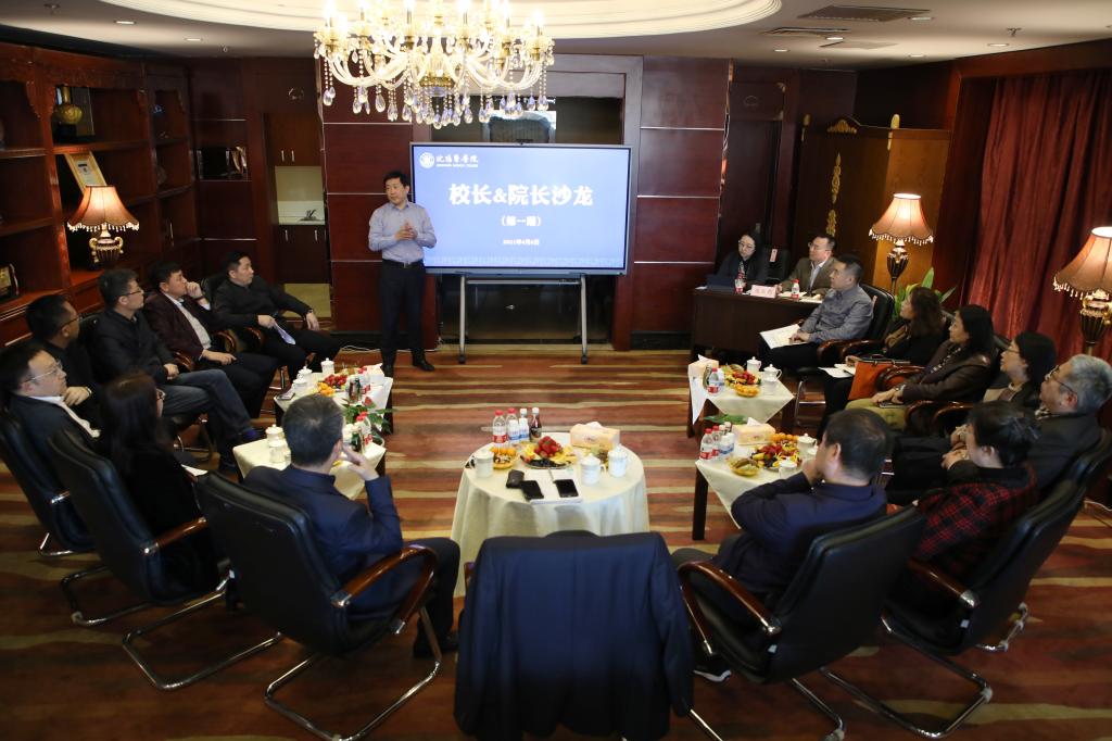 4月6日下午,首期校长&院长沙龙在致远楼会议室举行。学校校长及各院系部负责人参加了本次沙龙。本次沙龙以平等对话、深度交流的方式,聚焦新时期学校发展蓝图开展互通交流,深入分析了制约学校发展的瓶颈因素,精准研判了办学优势与专业特色,着力拓宽了提升办学水平的发展视野,进一步明确了立足新时代实现高质量发展的办学思路。本次沙龙由任甫院长主持。