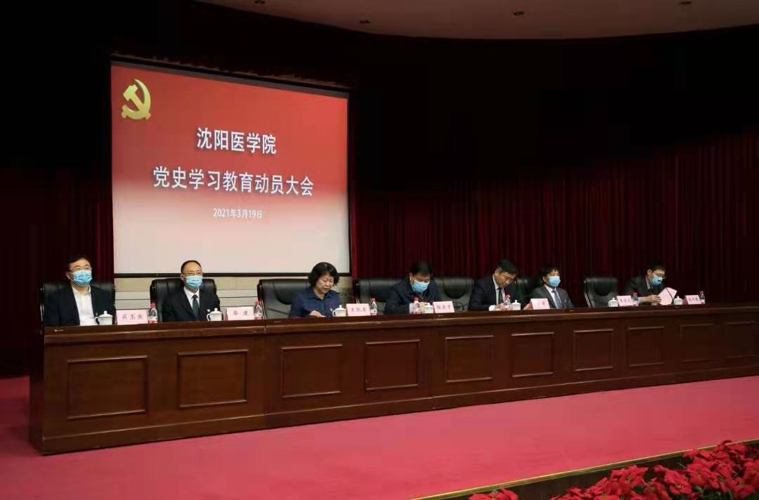 就落实中央、省、市党史学习教育动员会议要求,动员全校各级党组织和广大党员干部高质量高标准抓好党史学习教育,陶庆才书记强调,召开党史学习教育动员大会,主要任务是深入学习贯彻习近平总书记重要讲话精神,切实把思想和行动统一到党中央决策部署和省委、市委工作要求上来,把全校党史学习教育作为当前和今后一个时期的头等大事和首要政治任务抓紧抓实,教育引导全校党员干部学党史、悟思想、办实事、开新局,将学习教育与沈医工作实际相结合,以发现实际问题、解决实际问题为导向,以促进学校大发展、快发展为目标,以回应师生期待、办好师生实事为落脚点,奋力书写好新时代高水平地方医科大学建设的“沈医答卷”。