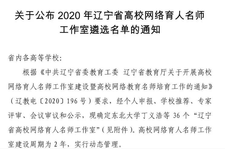 “辽宁省高校网络育人名师工作室”主要围绕理论宣传教育、网络热点阐述、网络作品原创、网络人才培养、网络阵地建设等方向进行研究,充分发挥网络育人名师的示范、引领、辐射、带动作用,培育积极健康向上的网络文化。此次立项“辽宁省高校网络育人名师工作室”共计36个。