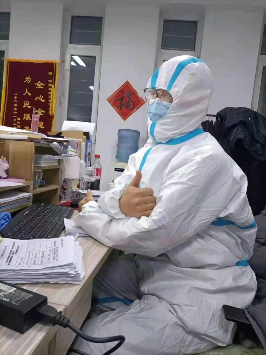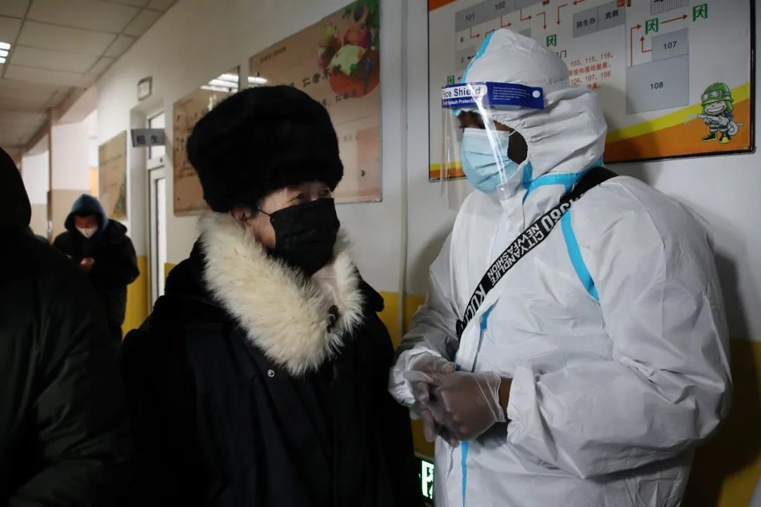 1月3日,当记者问她累不累、冷不冷时,穿着三级防护服的她,在防护面罩后露出了笑容:“我穿了两层棉裤,三层棉衣,贴了六个暖贴。而且市区安排我们四个小时轮换一次。”