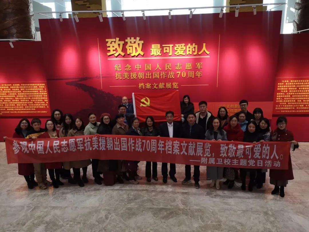 为深入落实学院“基层组织建设年”活动要求,推进“不忘初心、牢记使命”主题教育制度化、常态化,附属卫生学校党总支于2020年11月13日下午组织全体党员赴辽宁省档案馆,参观“致敬最可爱的人——纪念中国人民志愿书记军抗美援朝出国作战70周年档案文献展览”,开展主题党日活动。附属卫生学校党总支书记杨永利同志、校长韦家勇同志参加了本次活动。