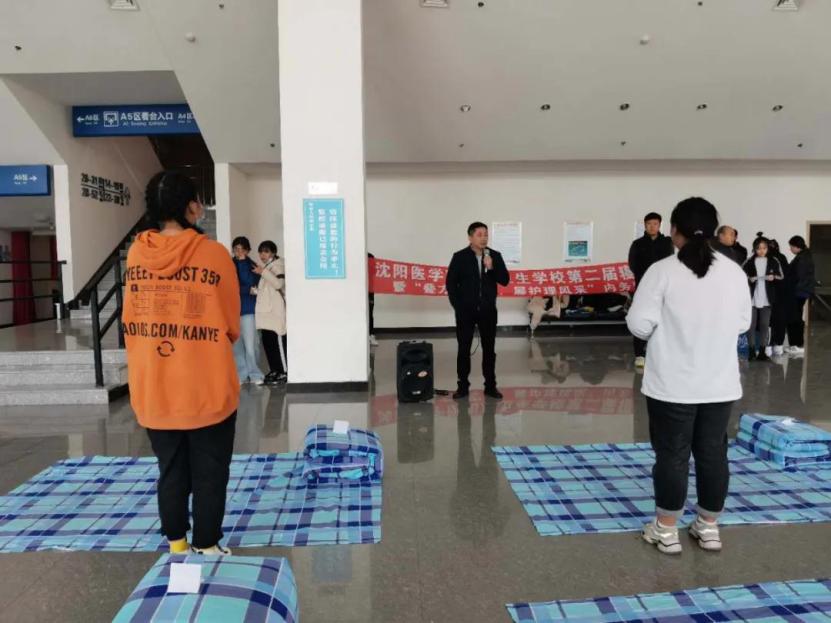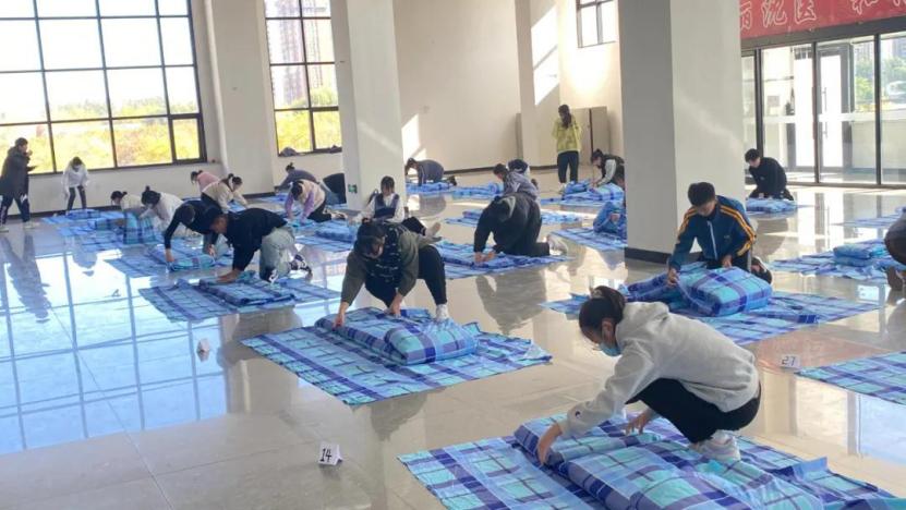 为规范学生寝室管理,培养学生良好生活习惯,附属卫校于10月23日中午在体育馆二楼,举办附属卫生学校第二届寝室文化节暨“叠方正军被,展护理风采”寝室内务整理大赛。