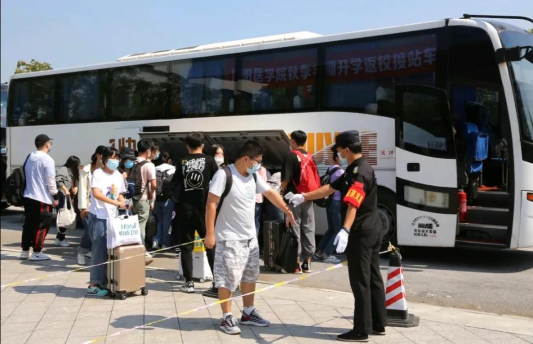 各个院系学生工作不同、暖心服务相似。基础医学院为每位返校生定制气球,制作寄语留言板,收集学生返校前的感言印制成条幅,为学生搭建愉快温馨的回家之路。医学应用技术学院提前到学生寝室开窗通风做好防疫消杀,制作辅导员老师卡通肖像门贴欢迎同学回家。口腔医学院租借车辆,成立志愿者服务队,帮助学生往生活区运送行李,布置指纹签到树,让学生感受回家的温暖。