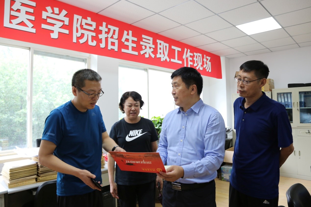 任甫院长高度肯定了招生现场的规范有序和严密管理,亲切慰问了招生一线的工作人员,并强调:“招生录取工作是学校工作的关键环节,生源质量的高低不但关系着学校的生存和发展,更是学校办学质量受社会认可程度的重要体现。全体招生工作人员要为国家、为学校、为考生高度负责,增强服务意识,提高服务水平,严守招生纪律,自觉接受监督,切实把招录工作的每个环节做细做实做好,确保招生录取工作平稳进行,持续推动生源质量稳步提升,为学校筑基发展把好入口关,给广大考生和家长、给全社会交上一份满意的答卷。”