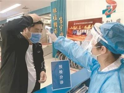 患者在沈医二院预检分诊处测量体温