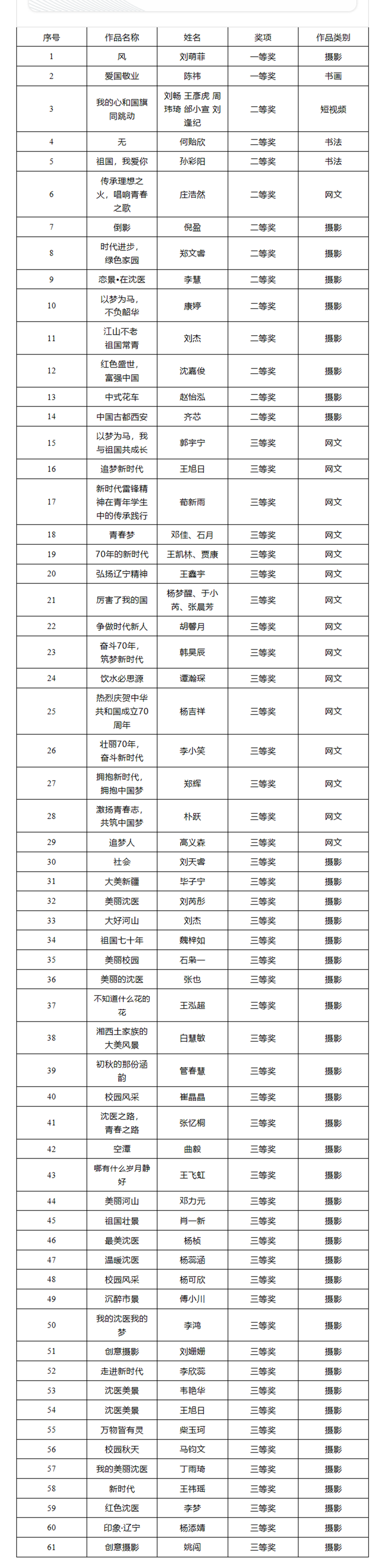 附:第二届辽宁省大学生网络文化节获奖学生名单