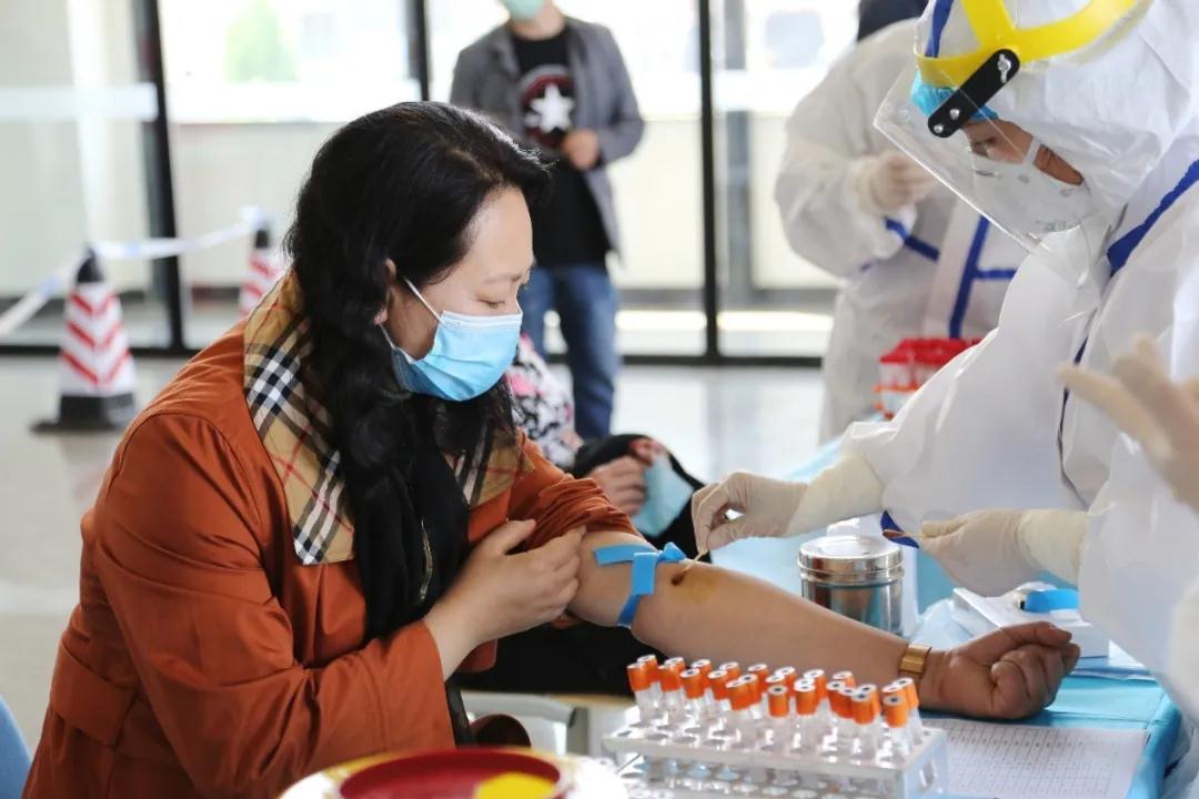 上午9:23,在于洪区卫健局和疾控部门的检测人员到位后,全体教职员工戴好口罩排队等候检测,在统一的周密组织下,有序来到体育馆门前,依次排成十列纵队按序号进行了核酸及血清抗体检测。为了避免人群聚集,学校全体教职员工每人严格按照1.5米间隔距离等候。为安全有序的进行检测,现场设置等待、登记、核酸检测、血液抗体检测等规定区域和路线。