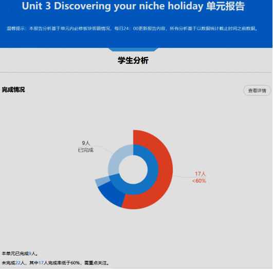 因此,孙哲老师以“混合式教+学”为理念设计线上教学,依托“U校园”智慧教学云平台,充分利用中国高校外语慕课平台上的部分优质英语教学资源,并通过“U校园”、“问卷星”、“批改网”等教学手段开展形成性评价,对学生的自主学习档案、课程参与记录、课后作业和阶段考核数据进行采集、整理、分析和反馈,勾勒出学生的学习轨迹,并形成学情报告。