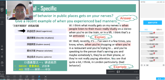 在此基础上,孙哲与同事们就学生在自主学习中暴露出的共性问题,在腾讯课堂直播课上与学生们集中讨论,共同解决。