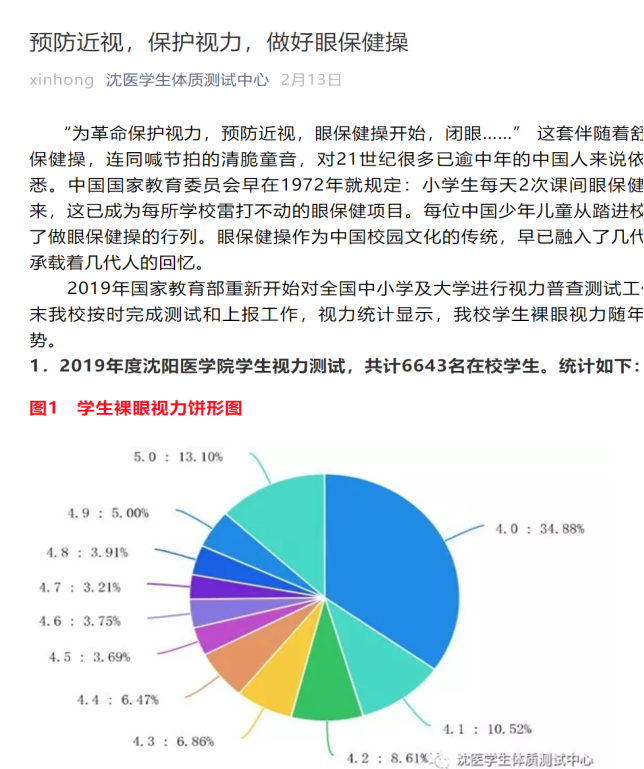 2019年对米兰milan官方网站在校生进行了视力测试,结果发现,随着年级增高,近视率也逐年增加。医学生是一个特殊的群体,课业负担繁重,保护视力是我们每个人都应养成的良好习惯。伴随着大批网课的到来,同学们视屏时间逐渐增多,用眼卫生尤为重要,督促学生做好眼保健操,我们义不容辞!