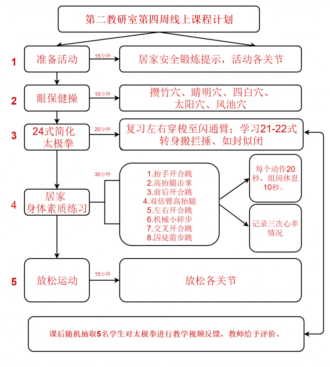 疫情防控期间,体育教学部针对提高学生体质健康和增强免疫力的教学目标,根据学生体质和所处环境的不同,教师通过直播或录播课程,开展课上、课下相结合的“一对一”的居家锻炼指导。从不同专项的“处方式教学”到“高强度间歇训练”,停课不停学,停课不停练。