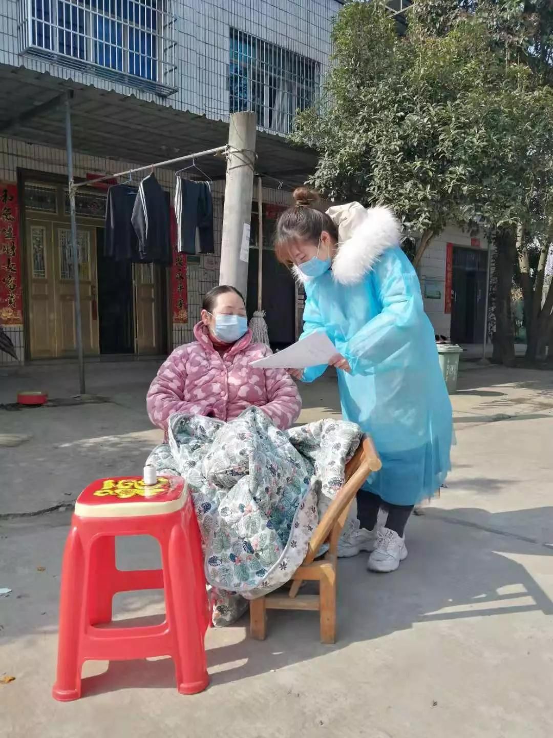 于婷在疫情之前就在新江村实习半个月的时间,知道村里老人多,不会用手机注册电子社保卡,就每天拿着自己手机挨家挨户去帮忙注册,她一个人,就注册了300多张电子社保卡。1月23日她的实习期到了,本应该在家过年休息,当她知道村里在新冠肺炎疫情防控一线比较缺人后,主动请缨希望贡献自己的一份微薄之力,积极响应政府号召,成为小河口镇抗击疫情志愿服务队的一员。