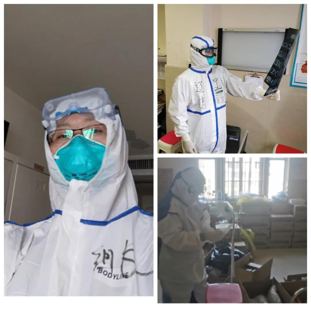 “我很好,我现在在武汉济和医院……这是我们白洋主任和赵钰主任……,这里是隔离病区,……这是我的战友!……同学们,你们要好好学习,打好基础!”