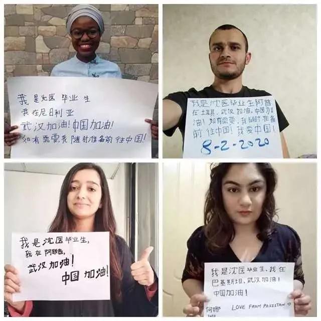 同时,留学生们积极响应学院发出的爱心募捐倡议,来自尼日利亚的2018届毕业生杨乐捐赠1000元人民币,来自巴基斯坦的2018届毕业生弗瑞德为学校邮寄2000个口罩。已经毕业回国的留学生们亲手写下“中国加油”“武汉加油”“如有需要,我随时准备前往中国”等感人字句。在疫情肆虐的时候,沈医留学生选择留在沈阳、留在沈医,表达与中国一同阻击疫情的意愿和战胜疫情的信心,将沈医人“博学洁行,厚德济世”的正能量传递给社会各界。
