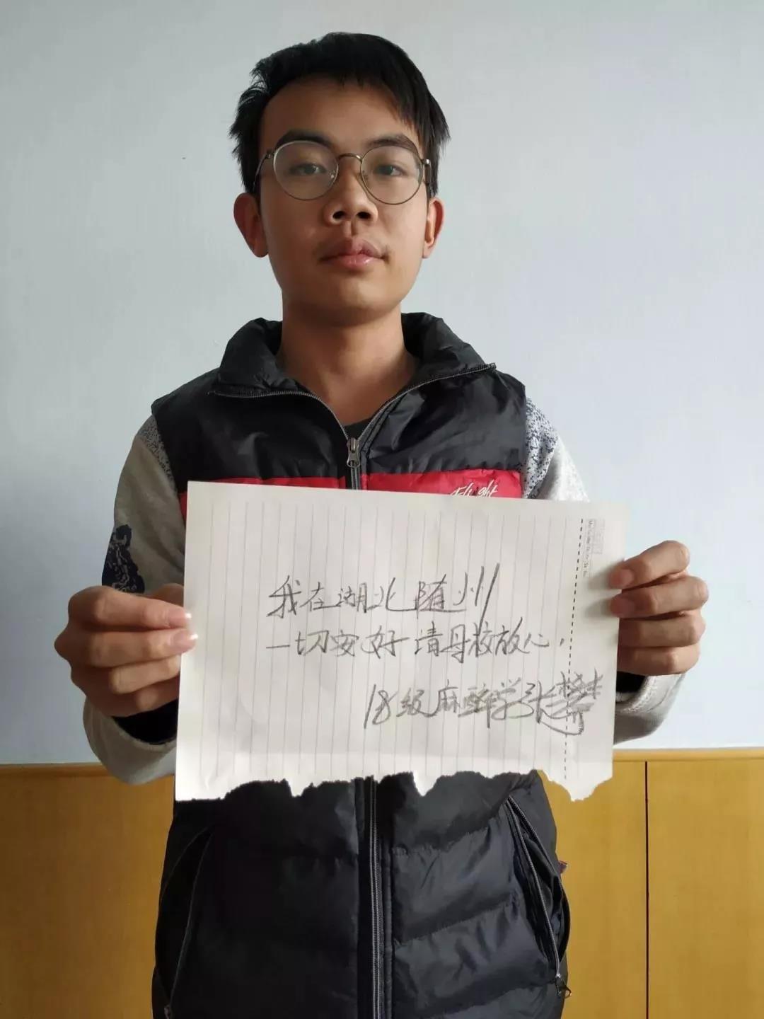 您的关心和同学们的祝福已收到,我们身在湖北各地向母校报声平安。虽在湖北,但一切安好。虽在家中,但一直心念同胞,愿中国加油!湖北加油!武汉加油!