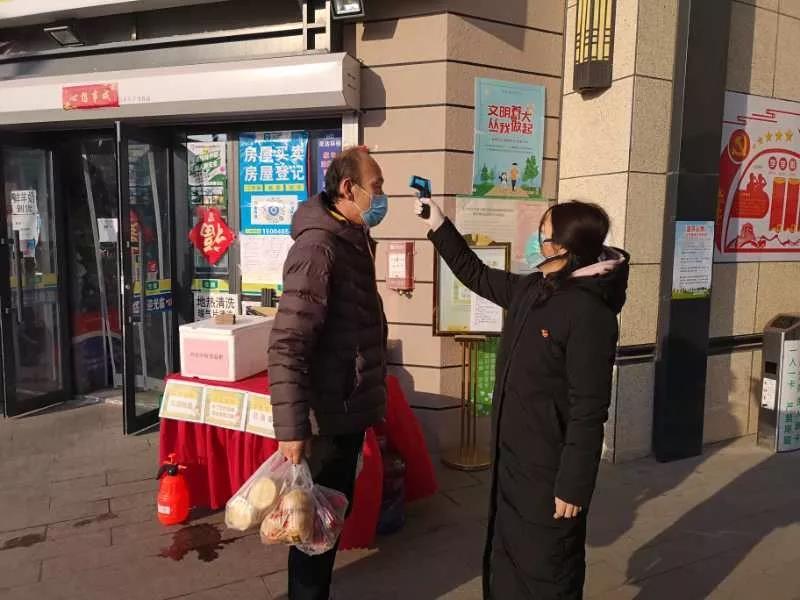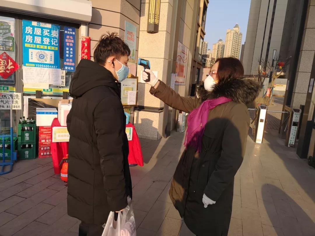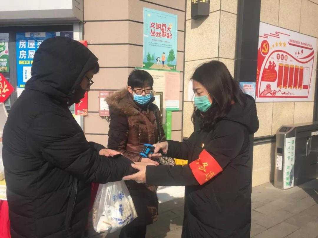 郭秀华老师在志愿服务期间的工作任务是对外出回来的社区居民进行体温检测。