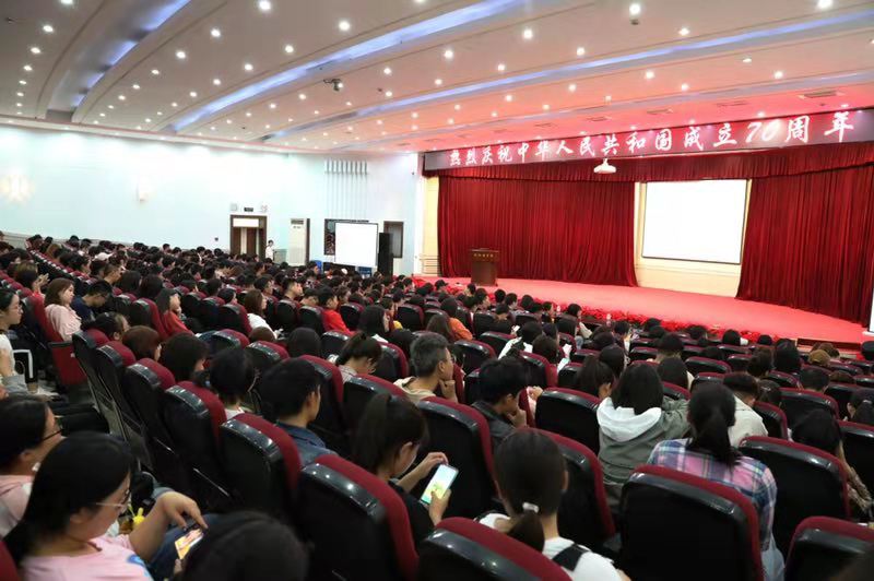 10月1日上午,庆祝中华人民共和国成立70周年大会在北京天安门广场隆重举行。中共中央总书记、国家主席、中央军委主席习近平发表重要讲话,随后举行盛大的阅兵式和群众游行。党委书记陶庆才,院长肖纯凌,党委副书记王凯军,副院长朱启文、刘成果、韩松、毕建在机关楼四楼会议室与在图书馆学术报告厅的400余学生代表同步观看了大会直播。