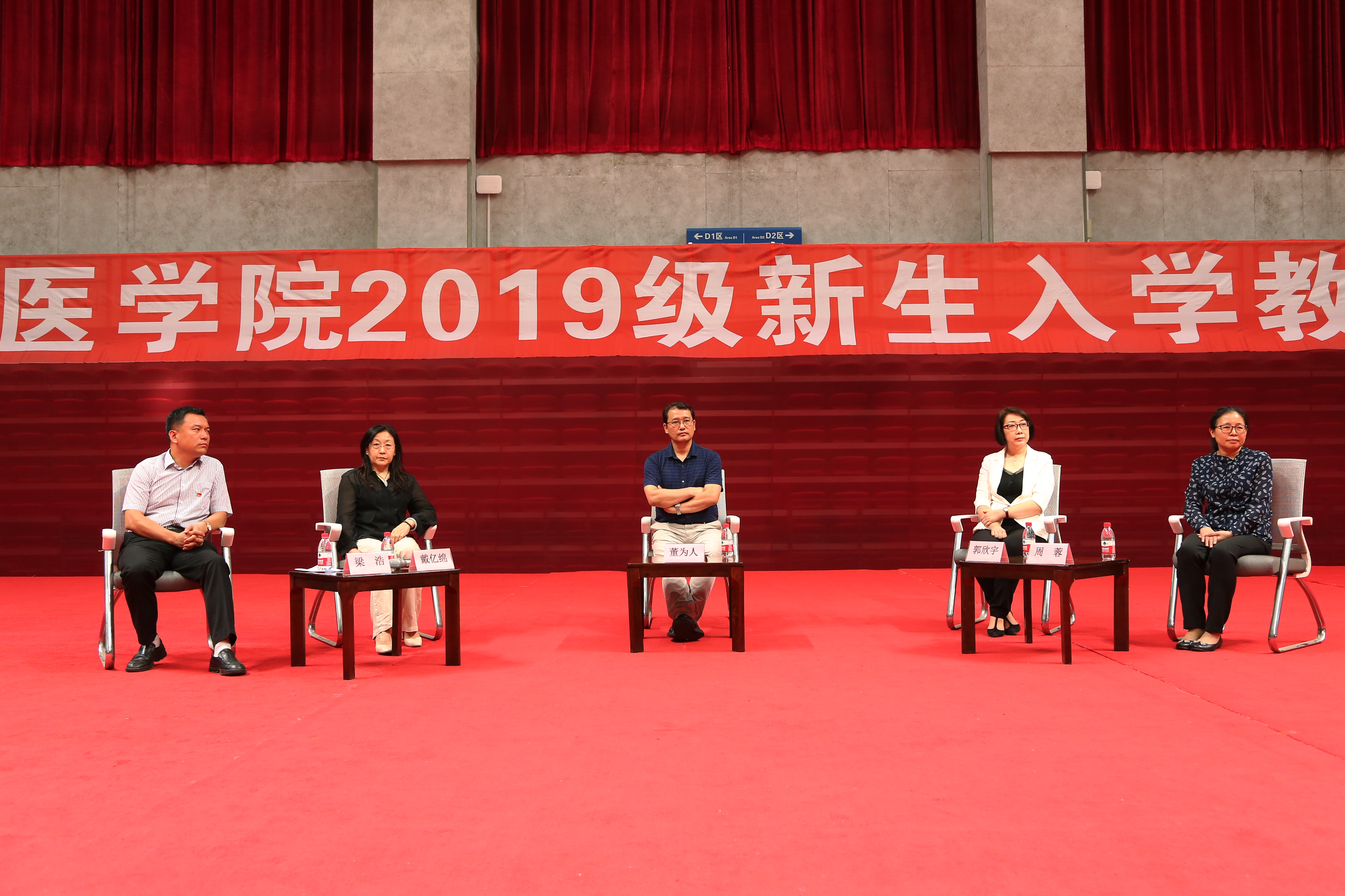 在随后的交流互动环节,同学们踊跃发言,在抒发内心感受的同时,也提出了诸多疑问。董教授和四位助讲嘉宾耐心地答疑解惑。四位嘉宾分别是:米兰milan官方网站附属第二医院妇产科主任郭欣宇教授、米兰milan官方网站附属第二医院妇产科病房护士长周蓉、米兰milan官方网站社会科学教学部主任戴亿绵副教授、米兰milan官方网站学生处处长梁浩教授。有同学提出了医患关系为何紧张以及如何解决的问题,几位嘉宾从不同角度阐述了产生医患矛盾的原因,并说明了几点可能解决问题的方法,如:第一时间书写好病历、提高自己专业技能、拥有强大内心、具有良好的沟通能力等。还有的同学停留在“先交钱再救人”的传统思想上,几位嘉宾及时纠正,并表示,医者要以“救死扶伤”为原则,如果有特殊贫困患者,可将情况逐级上报,国家会有相应的政策进行资助,另外以红十字会为代表的医疗基金会、慈善组织等均可以解决一部分贫困患者看病难的问题,鼓励同学们刻苦学习、努力提高专业技能、为推动我国医疗事业的发展贡献自己的一份力量。一位同学被影片中李医生调侃自己“每月32号放假”,将自己的辛苦一笑置之的精神深深感动,并提出在高强度工作的压力下,作为医者,要如何缓解压力,调整心态,几位嘉宾纷纷给出了自己缓解压力的方法,使学生消除了一直以来对于医生工作的压力和恐惧。令人感动的是,一位2019级新生哽咽地为大家讲述了发生在她身上真实的故事,她的弟弟患有重病,从小跟着妈妈一起照顾弟弟的她,亲身经历过很多医生忘我工作、救死扶伤的场面,正是在这些医生的不懈努力下,她的弟弟痊愈了,她很感谢医生,也希望自己能成为一名医生,把这份爱、这份责任、这份“不忘初心”的精神传递下去,让更多的人感受到温暖。