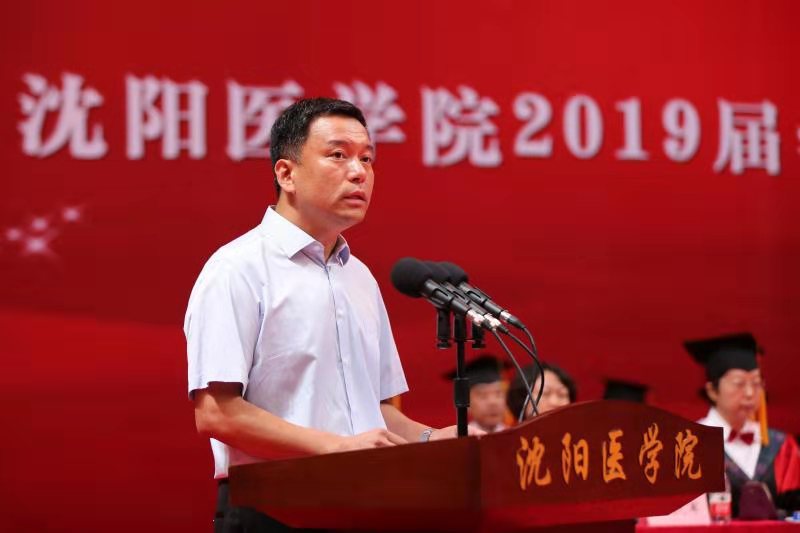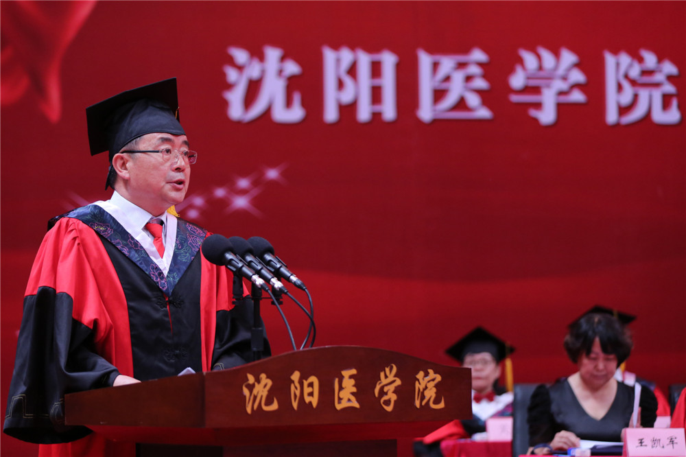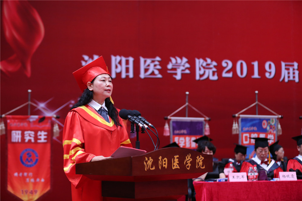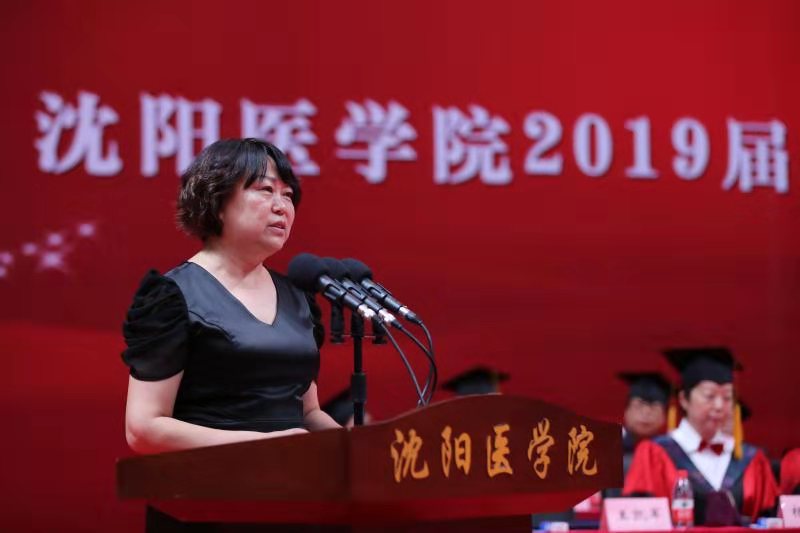 典礼上,肖纯凌院长发表毕业致辞。她首先向圆满完成学业的全体毕业生表示热烈的祝贺,向辛勤培育孩子的父母、悉心教导的教师表示崇高的敬意和衷心的感谢。她同大家一起回顾了沈医的飞速发展:学校成为辽宁省转型发展示范学校,顺利通过本科教学工作审核评估、临床医学类本科专业评估、护理学专业认证。2018年,在软科“2018年中国最好大学排名”综合实力强的大学中,米兰milan官方网站综合排名为第212名,名列辽宁高校第12位。2019年,在“中国最好医科大学”综合排名中,学校名列第35位,在辽宁省医学院校位列第三。肖纯凌院长勉励全体