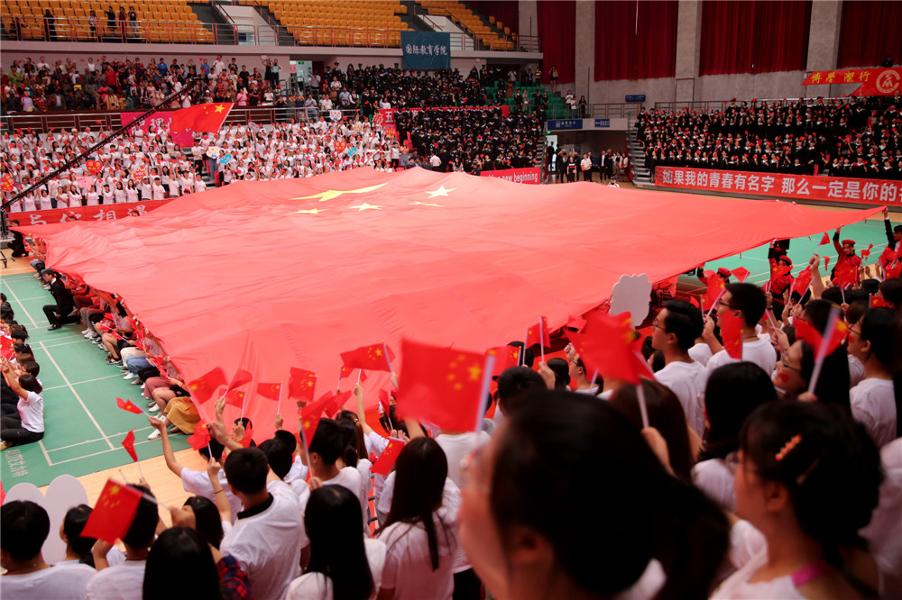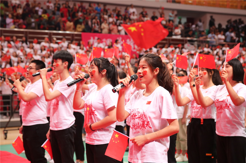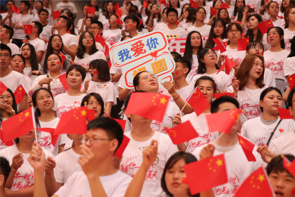 典礼开始前,在场的全体师生高唱《我和我的祖国》,共祝祖国和沈医一步步走向美好的明天!