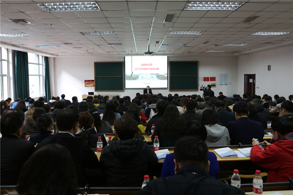 3月2日,学校在致远楼阶梯101教室举办2019年寒假干部培训班。学校领导班子成员,处级、科级干部(负责人),教研室主任,党支部书记,部(室、中心)主任,附属医院班子成员、党办主任、组织人事科长、科教科长等200余人参加。此次培训班由院长肖纯凌教授主持。