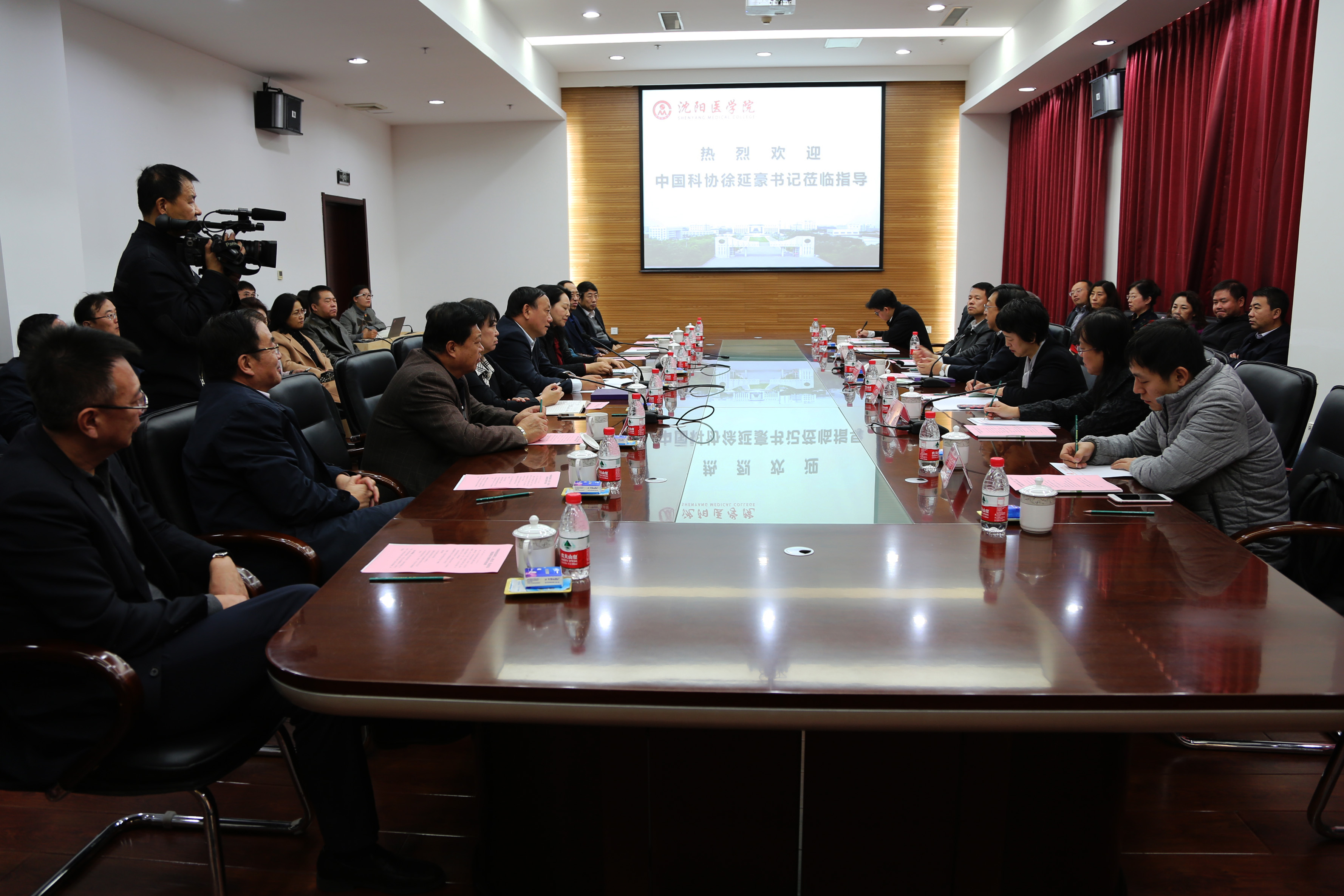 2018年11月7日,中国科协党组副书记、副主席、书记处书记、原米兰校长徐延豪同志来米兰考察指导,并在致远楼第五会议室与米兰领导班子进行交流座谈。中国科协党组副书记、副主席、书记处书记徐延豪,徐延豪同志秘书吕波同志,沈阳市科协副主席张丽茹、张引平秘书长、办公室主任李真,学会部部长王文革,学会部曲涛同志,米兰milan官方网站领导班子、学院职能处室部门、各二级学院、教学教辅单位负责人和附属医学院班子全体成员参加了会议。会议由米兰milan官方网站党委书记张广印主持。