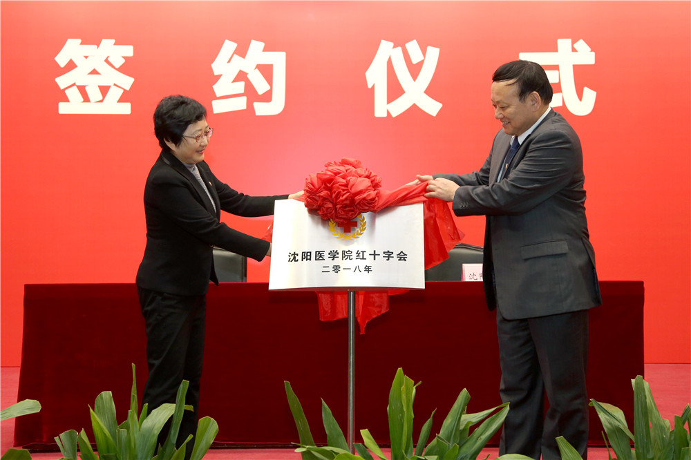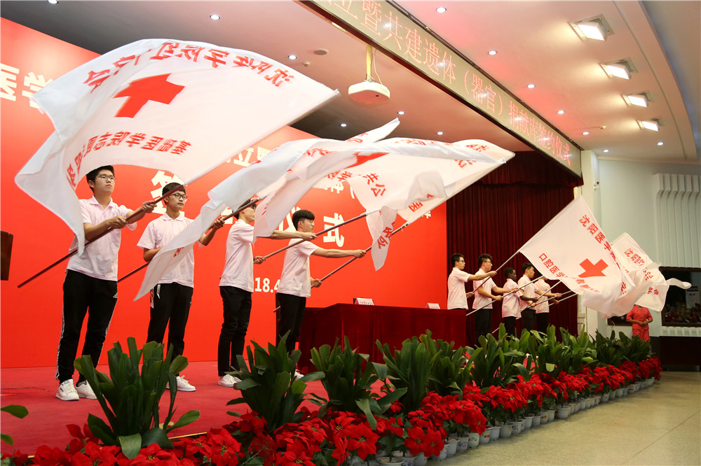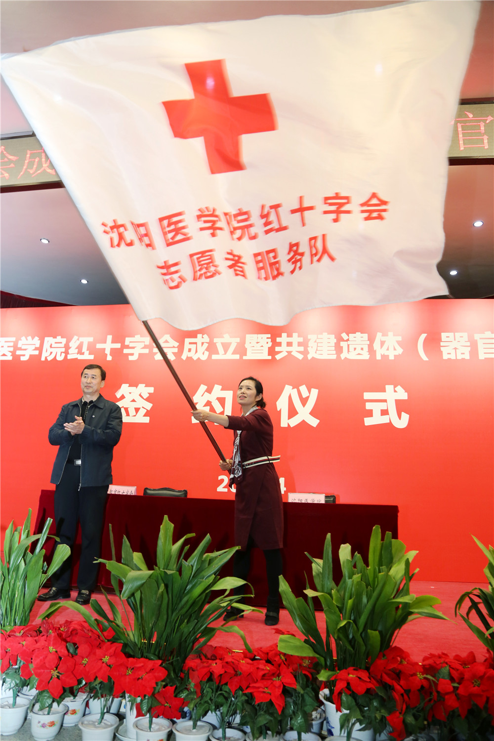 随后,段阳书记、肖纯凌院长分别代表沈阳市红十字会与米兰milan官方网站签署共建遗体(器官)捐献库协议,段阳书记、张广印书记为“米兰milan官方网站红十字会”揭牌。沈阳市红十字会副会长王长钟为米兰授旗, 团委书记杨迪接旗,米兰milan官方网站青年志愿者代表带领全体志愿者宣誓。