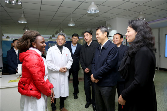 随后,冯守权部长一行参观了辽宁省人体科学展览馆、临床教学实验中心和校史馆。冯守权对学校在人才引进和培养、科研教学等方面取得的成果给予了高度评价,对学校实施国际化、信息化的发展战略,积极服务沈城表示赞赏。