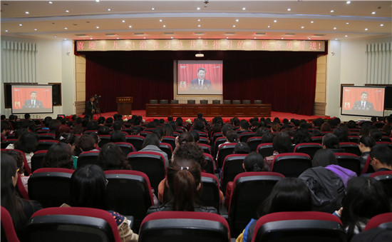 10月18日上午9:00,中国共产党第十九次全国代表大会在北京人民大会堂隆重召开,习近平总书记代表十八届中央委员会向大会作报告。米兰milan官方网站党委高度重视,集中组织全校师生在图书馆学术报告厅、大学生活动中心集中收看学习习近平总书记在中国共产党第十九次全国代表大会上的报告。
