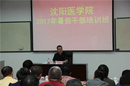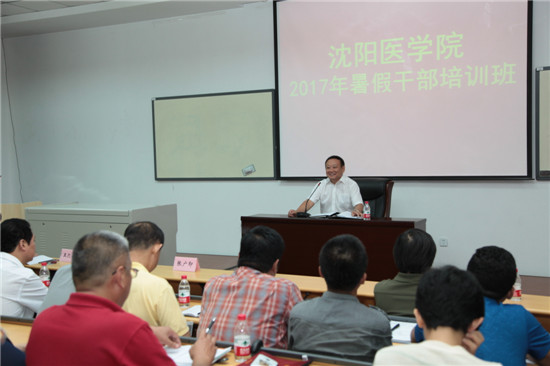 为深入学习贯彻习近平总书记在全国高校思想政治工作会议上的重要讲话精神,省委书记、省人大常委会主任李希在全省高校思想政治工作会议上的重要讲话精神,市委书记易炼红在沈阳高校领导干部暑期理论研讨班开班仪式上发表的重要讲话精神,进一步统一思想、明确目标、落实责任,8月26日,学校2017年暑假干部培训班在致远楼阶梯101教室开班。学校领导班子成员,处级、科级干部,教研室主任,党支部书记,部(室、中心)主任,附属医院班子成员、党办主任、人事科长、科教科长等200余人参加。此次培训班由党委副书记王凯军主持。