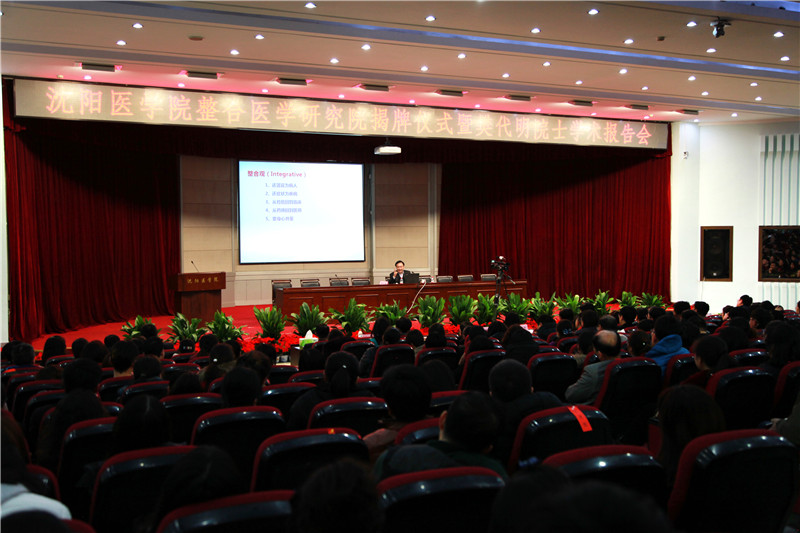 2017年2月27日下午,米兰整合医学研究院揭牌仪式暨樊代明院士学术报告会在图书馆六楼学术报告厅举行。中国工程院副院长樊代明院士,沈阳市科协党组书记、副主席倪左,沈阳市委教科工委副书记孙晓慧,沈阳市科协副主席李宏印,沈阳市科协学会学术部部长王文革,沈阳市科技局社发处处长赵宇,沈阳市卫计委政策法规处处长赵娟,学校领导班子全体成员,校本部全体教职工,附属医院领导班子成员,医院职能部门负责人,教研室主任,学科、学术、专业带头人,研究生、本科生代表出席了本次大会。会议由院长肖纯凌教授主持。