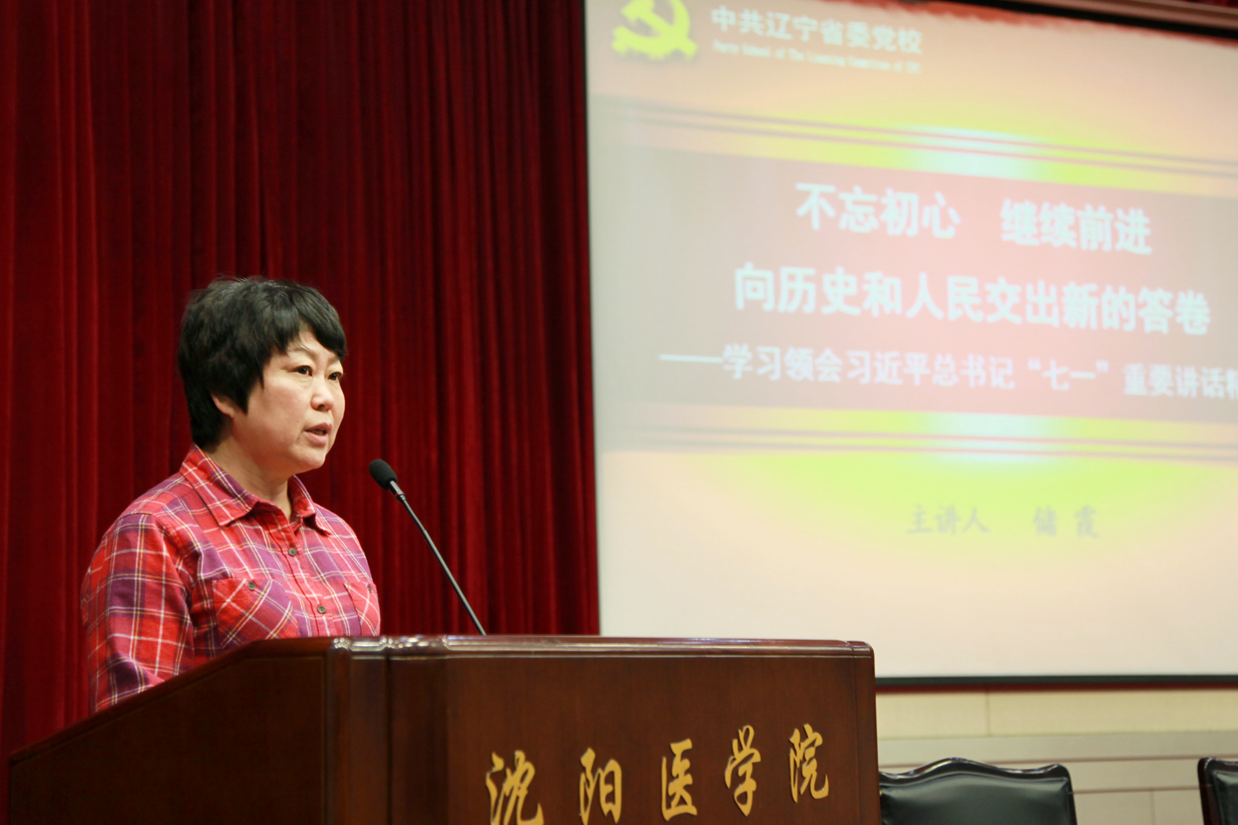 为深刻领会和准确把握习近平总书记“七一”重要讲话精神,结合“两学一做”学习教育安排, 10月28日,学院邀请辽宁省委学习贯彻习近平总书记“七一”重要讲话精神“五进”宣讲团成员、中共辽宁省委党校储霞教授做专题报告。报告会由党委副书记王凯军同志主持,学院领导、全体教工党员和部分学生党员代表参加了报告会。