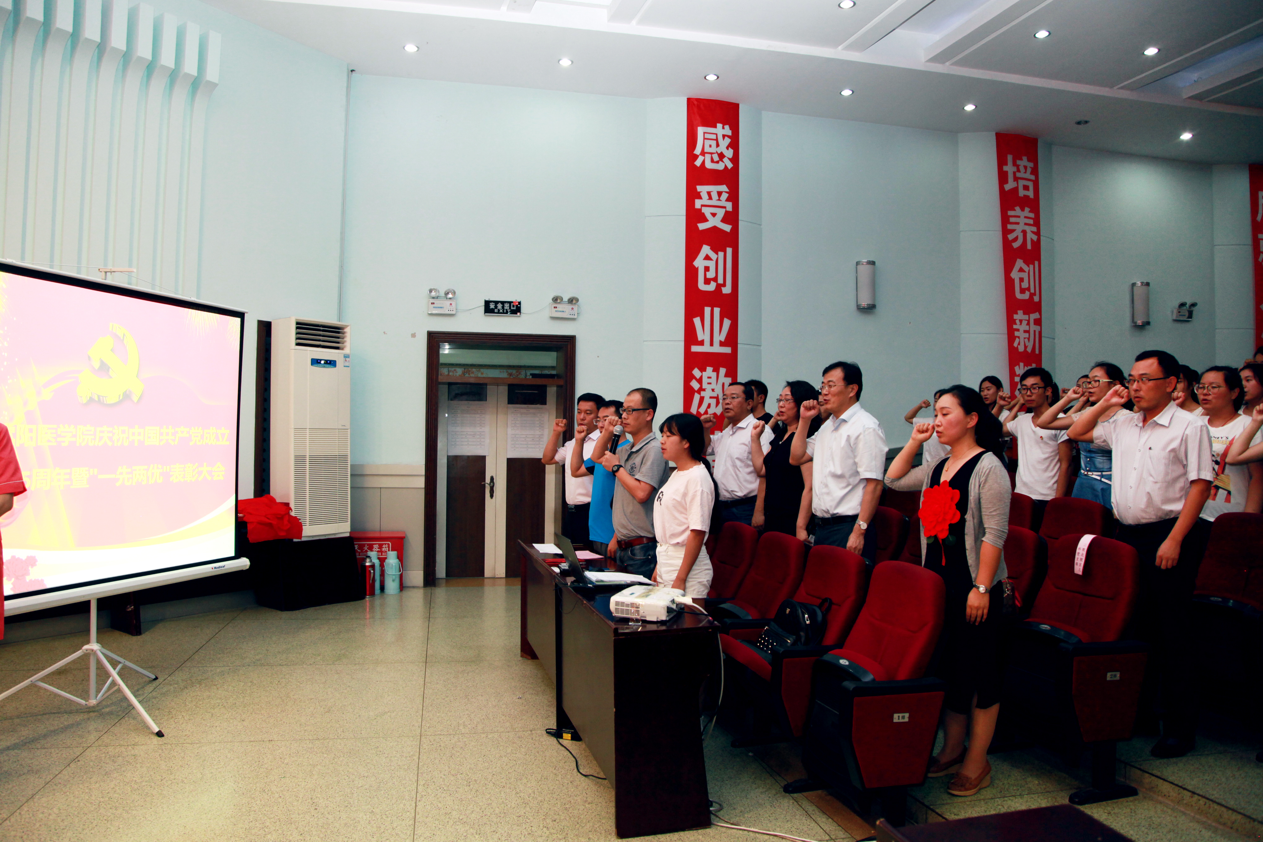 下午,米兰召开庆祝中国共产党成立95周年暨“两优一先”表彰大会,校党委书记张广印,院长肖纯凌,副院长朱启文、刘成果、任冰、韩松、毕建等校领导,校本部全体党员,附属医院班子成员、党群部门负责人、党支部书记等出席大会。大会由院长肖纯凌教授主持。