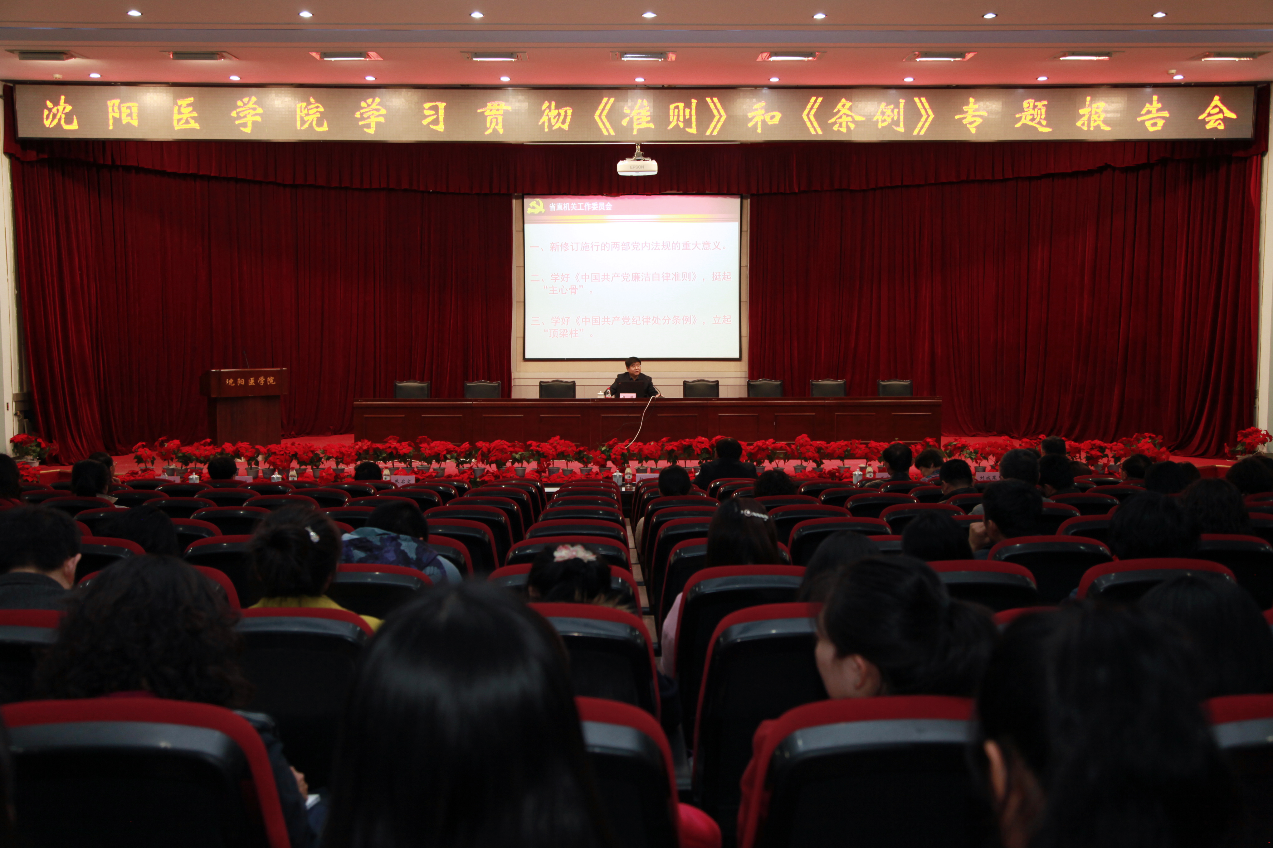为加深对《准则》和《条例》的学习理解,把握重点,4月15日,在学术报告厅,学校邀请辽宁省省直机关工委赵满副书记为我们作《坚持高标准,守住底线,做合格共产党员—学习准则和条例的体会》专题报告。报告会由学校党委副书记、纪委书记王凯军同志主持。