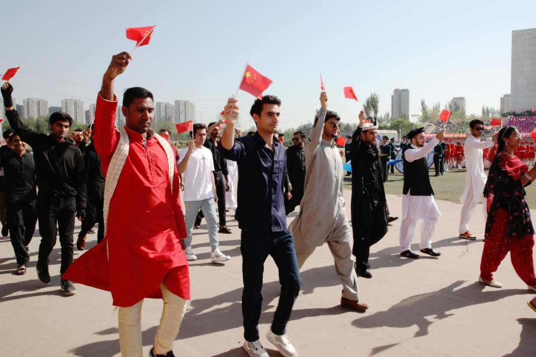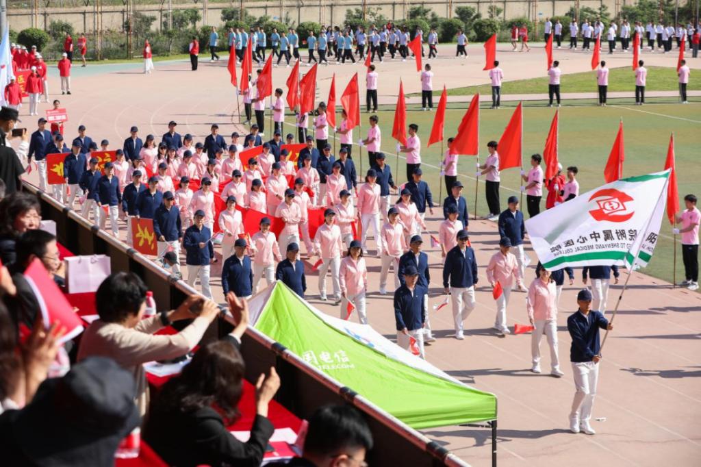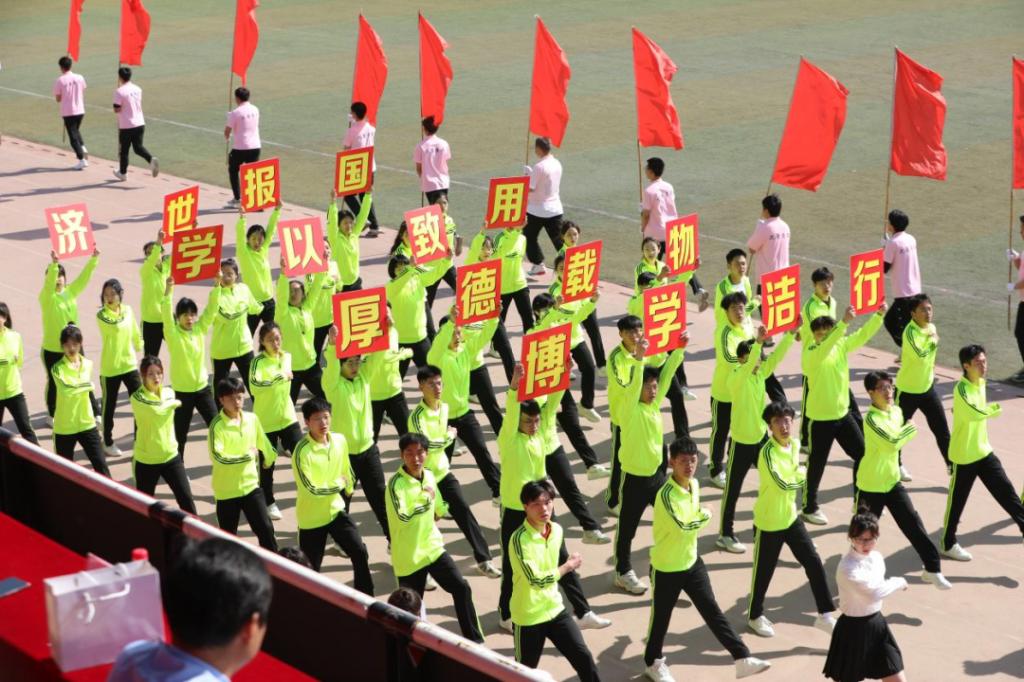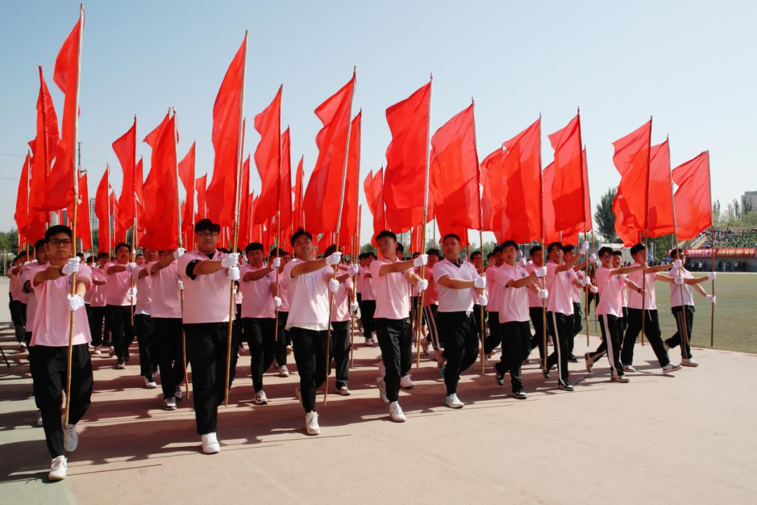 红旗招展,英姿飒爽。坚毅的面容、整齐的步伐,青春在阳光下闪耀。