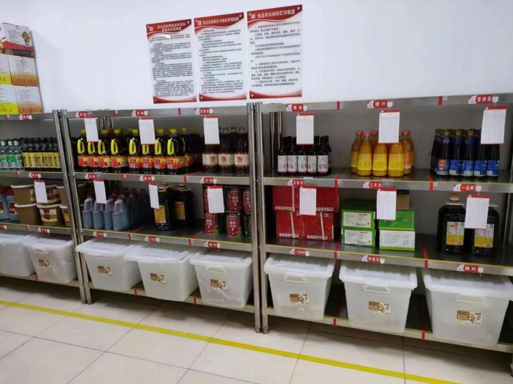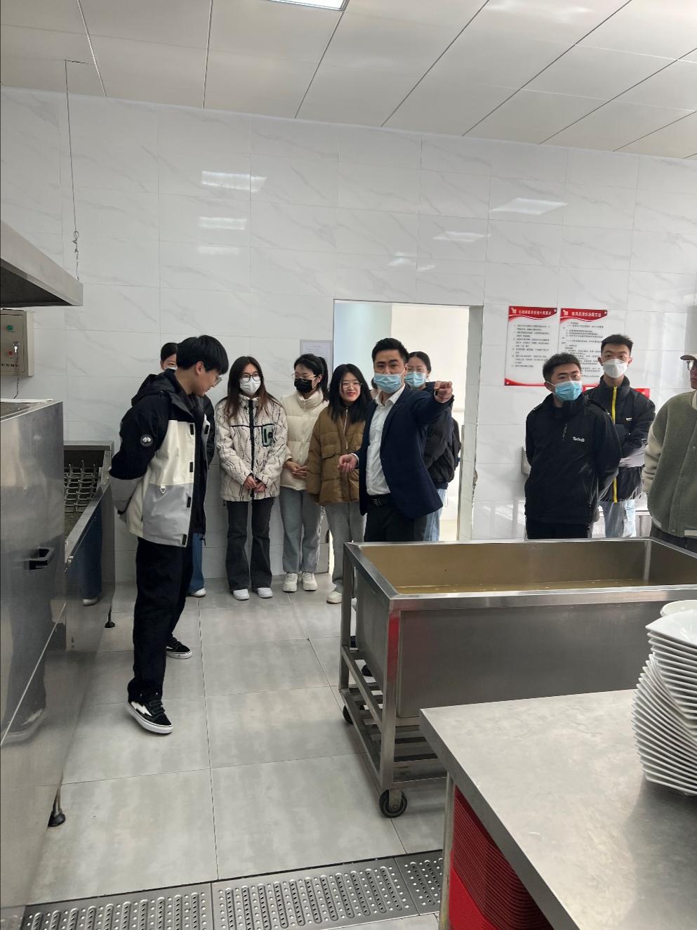 上午9点,食堂景经理带领10位学生代表进入到食堂后厨,实地参观了原材料的采购、验收、储存、加工、烹饪、售卖等各个环节,并向同学们详细展示了如何进行仓库管理,如何进行食品留样等工作。