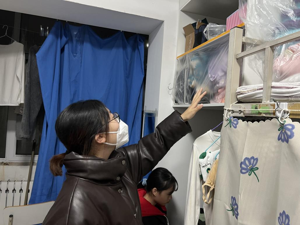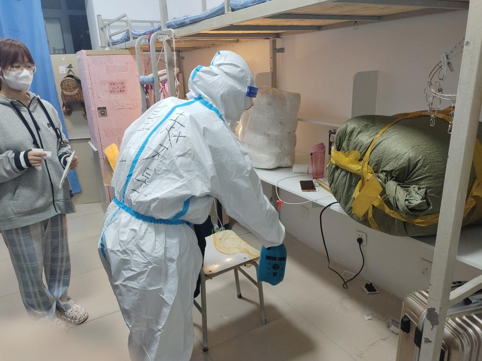 2022年10月8日,刚入驻7号楼的她就进入了工作状态,统计楼宇学生信息,了解学生返校情况,建立楼宇动态台账,楼内926名学生的情况她都如数家珍。打赢疫情防控阻击战,关键在末梢,成败在基层。由于七号楼楼宇新生占比高,学生返校行李多,她带领志愿者们化身为“行李搬运工”,解决新生从校车门到寝室门的“最后一公里”。她全天候负责楼宇入住同学的摸底排查、健康监测、消毒通风等工作,每当学校全员核酸检测时,她准时来到一楼大厅,与楼层长一起组织同学们按时进行核酸检测,确保做到“不漏一寝、不落一人”。