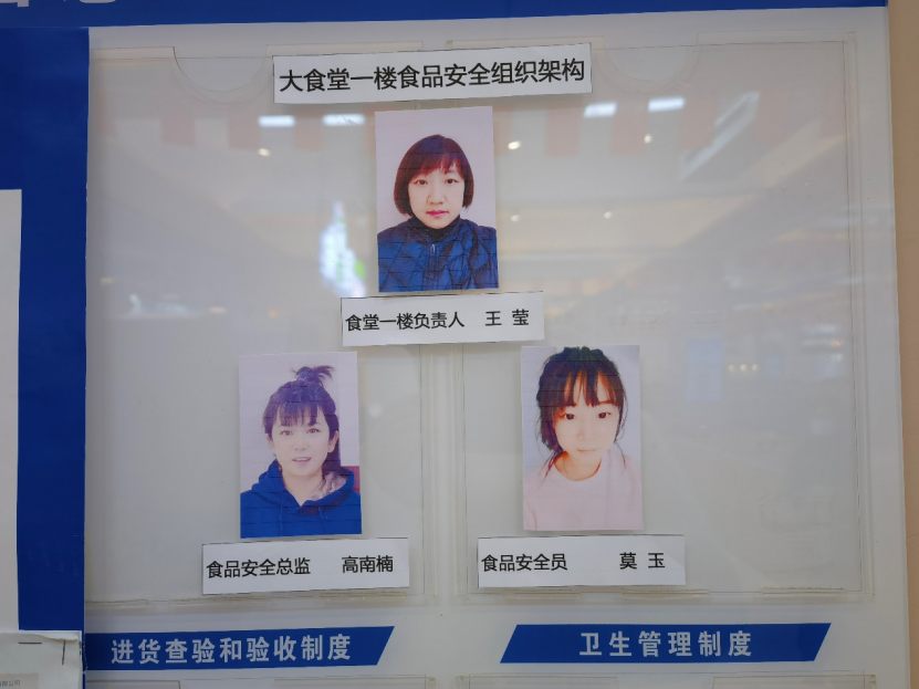 在食品安全督查工作专班的建议下,专班紧跟国家市场监督管理总局的规定,在两个食堂均建立健全食品安全责任体系,为学校食品安全监管工作再加一道“保险锁”。此外,食品安全督查工作专班吸纳学生参加食堂检查工作,在一定范围内让更多同学了解米兰学生食堂情况,令同学们吃得健康,吃得放心。
