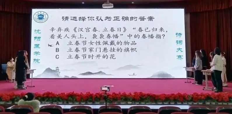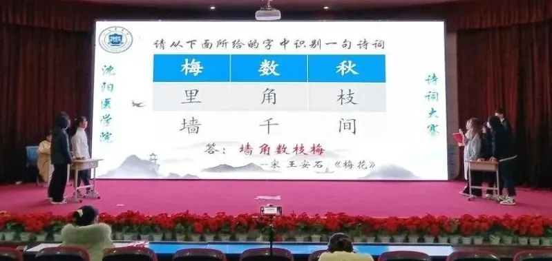 “书生意气,挥斥方遒”,比赛现场气氛热烈,选手们热情高涨,引经据典,为观众展现了中华诗意之美和历史之厚重、文明之特别。来自各个学院的十支队伍积极抢答,你追我赶,经过“飞花令”“点词成诗”“解词解句”三个环节激烈地角逐后,基础医学院代表队获得本次比赛的一等奖,护理学院代表队荣获二等奖,医学信息工程代表队获得三等奖。