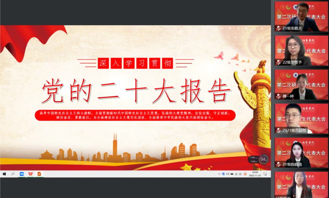 11月25日,米兰milan官方网站第二次研究生代表大会顺利召开。本次会议历经两个月的紧张筹备,采取线上会议方式进行。研究生院院长李舒音、研究生院副院长刘光焱、大连海事大学马克思理论宣讲团副团长王闻萱博士、锦州医科大学研究生会执行主席于涵、研究生院全体工作人员及35名研究生代表参加了此次大会。米兰milan官方网站第二次研究生代表大会主要议程有预备会议、开幕式暨第一次全体会议、分组讨论、第二次全体会议、第三次全体会议暨闭幕式。