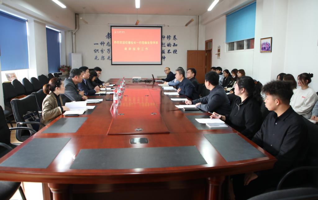 任甫校长一行听取了生物学系相关工作汇报,并与基础医学院领导班子、生物学系全体教师、部分学生代表进行了深入座谈,并与学生互动,回答了一些学生在学习生活、实习就业、专业认知、自身发展等方面关心的问题。