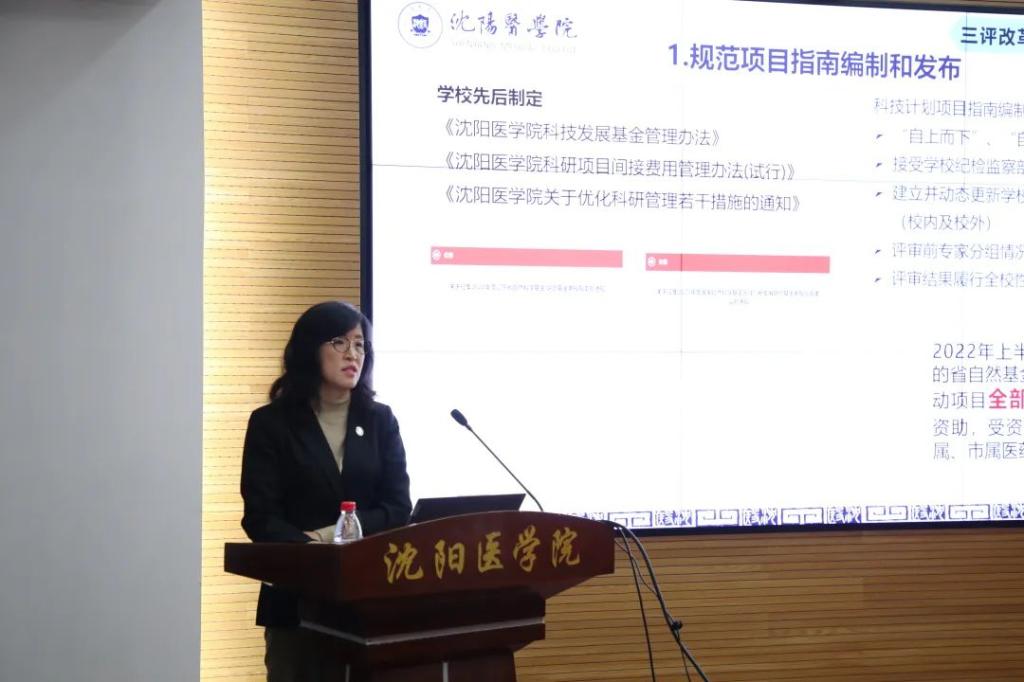 11月8日,由沈阳市科技局监督与诚信建设处处长李伟带队,沈阳航空航天大学科技处处长屈力刚、沈阳化工大学科研院副院长谢英鹏、市卫健委科教处处长杨皓、市教育局高教处副处长张金伟、市科技局监督与诚信建设处副处长滕强保等一行到米兰进行科研诚信、科技伦理和“三评”改革实地调研评估。副校长李荣梅教授,科技处、人事处、教务处、学科建设与发展规划处、审计处、纪检监察处、科学实验中心、实验动物研究中心、学院编辑部等相关部门负责人以及两所直属附属医院主管副院长参加了评估工作会。