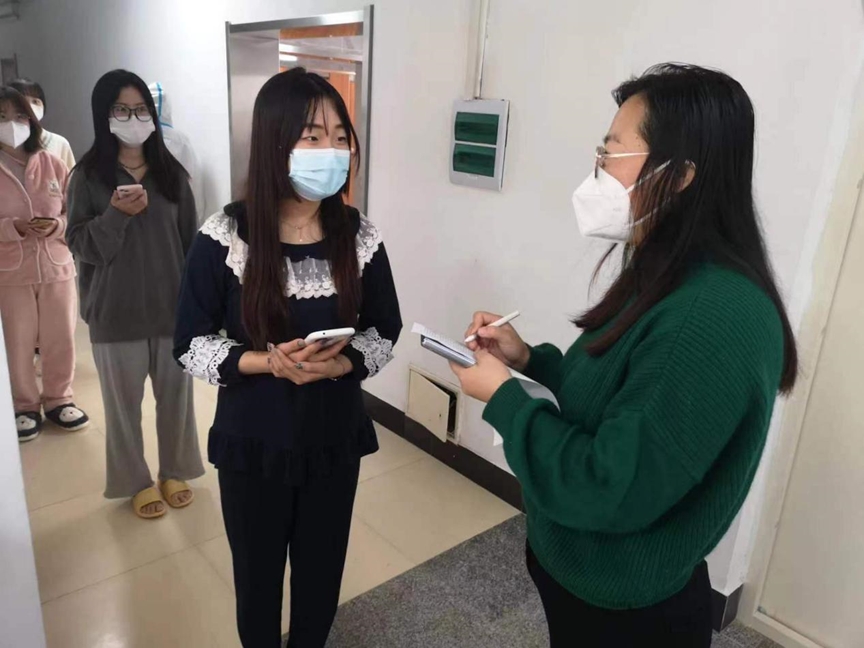 楼长、单元长、楼层长下沉到学生中,每天巡视、定期探访、及时传达、时时宣传,核酸检测、环境消杀、数据报送、心理疏导、政策落实,动态跟踪了解学生思想状况、学习状况、生活状况,向学生细致解读疫情防控政策,加强思想引导,争取学生的理解支持。他们吃住在一线,陪伴学生们一同度过了校园静态管理的时光,为维护学校的安全稳定做出了积极的贡献。