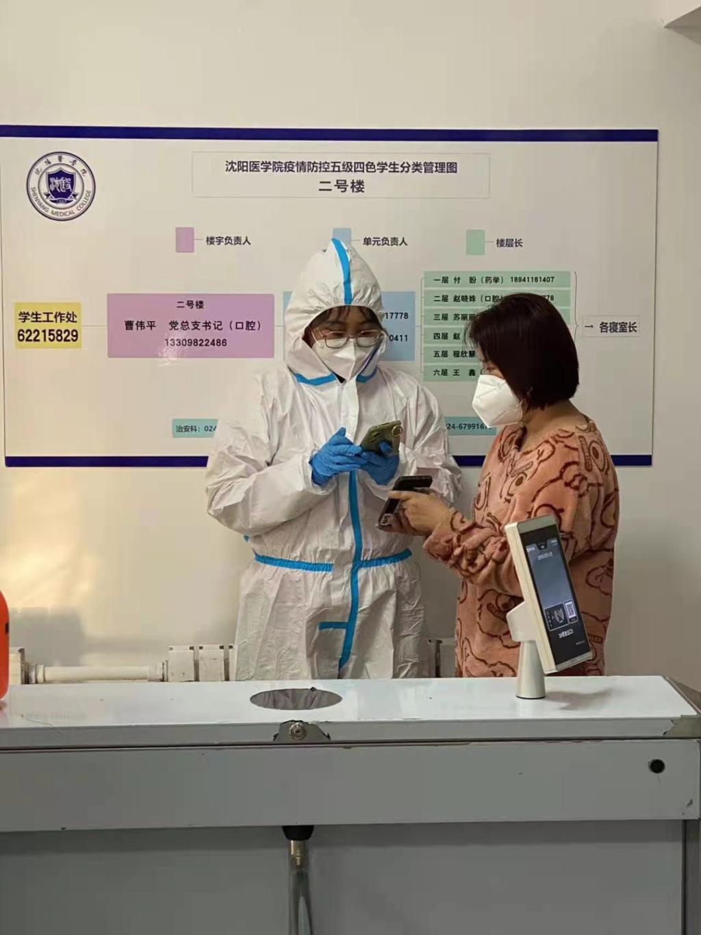“同学,请先出示校园核酸检测码,再出示辽事通健康码……” “同学,请稍等一下,需要保持安全距离”……,这熟悉的话语是药学院学生科长程欣慧对同学们的每日温馨提示。程老师是二号楼单元长和楼层长,同时承担着配合核酸检测人员完成全体学生每日核酸检测扫码及组织工作。按照疫情防控的相关要求,本着“分楼层、不接触”的原则,程老师带领全体楼层长规划制定核酸检测行进路线,很短的时间就能完成全楼三百余名学生的核酸检测工作,做到了安排有序、不漏一人。